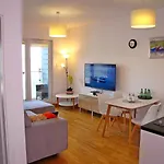 Eine Küchenzeile mit einer Mikrowelle, einem Wasserkocher und einem Kühlschrank gehört zur Ausstattung des Apartments für Selbstversorger. Für einen bequemen und entspannenden Aufenthalt in der Unterkunft stehen den Gästen Ausstattung zur Kaffee- & Teezubereitung zur Verfügung. Das Restaurant Sublima Restaurant bietet europäische Speisen an und liegt in ca. 5 Gehminuten Entfernung von diesem Apartment. Die Unterkunft ist direkt neben der nächstgelegenen Bushaltestelle Zwyciezcow.